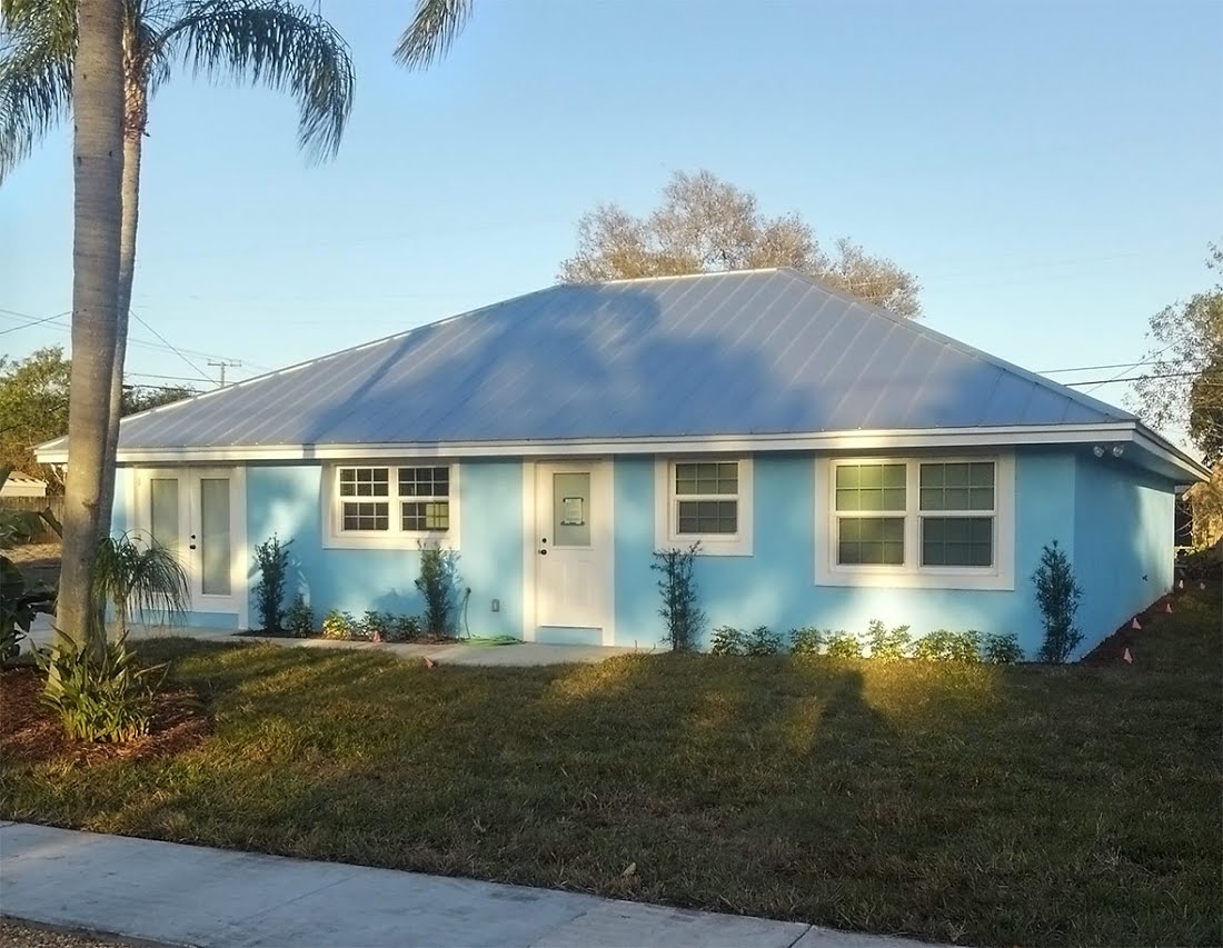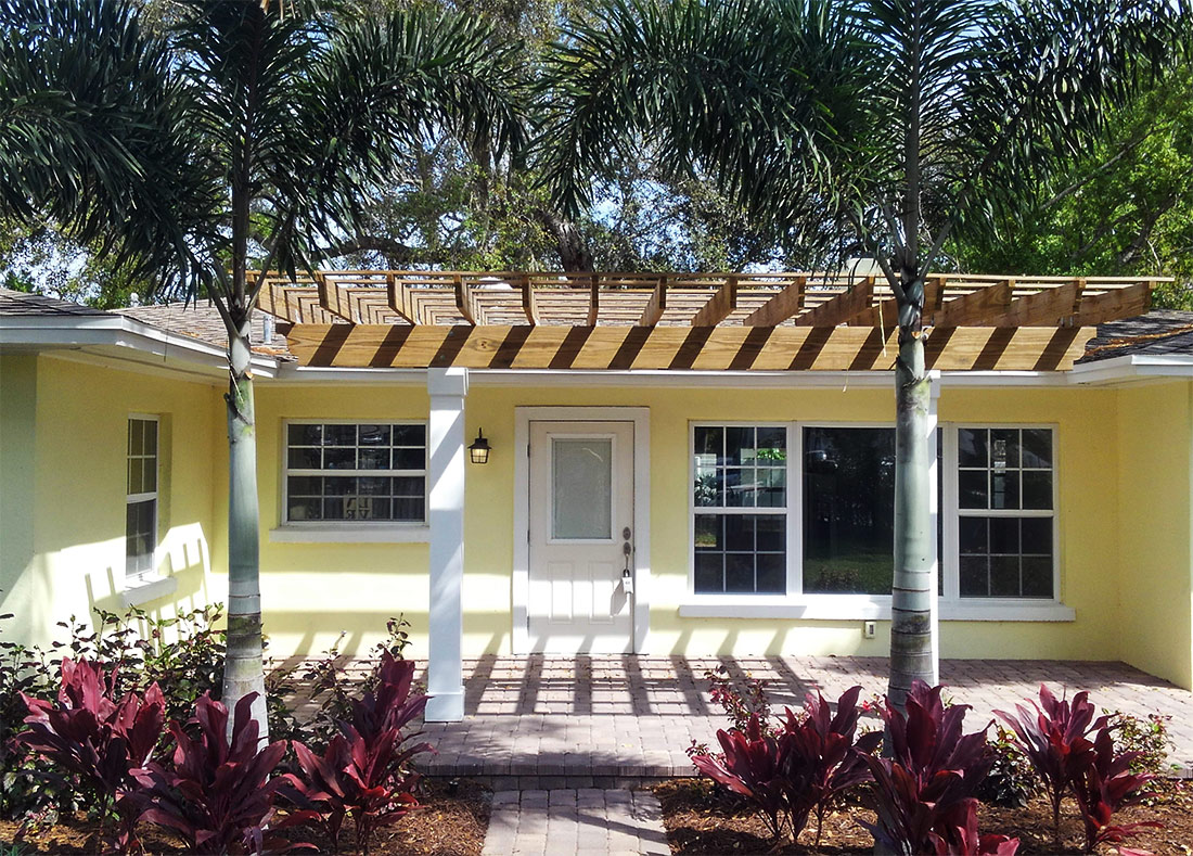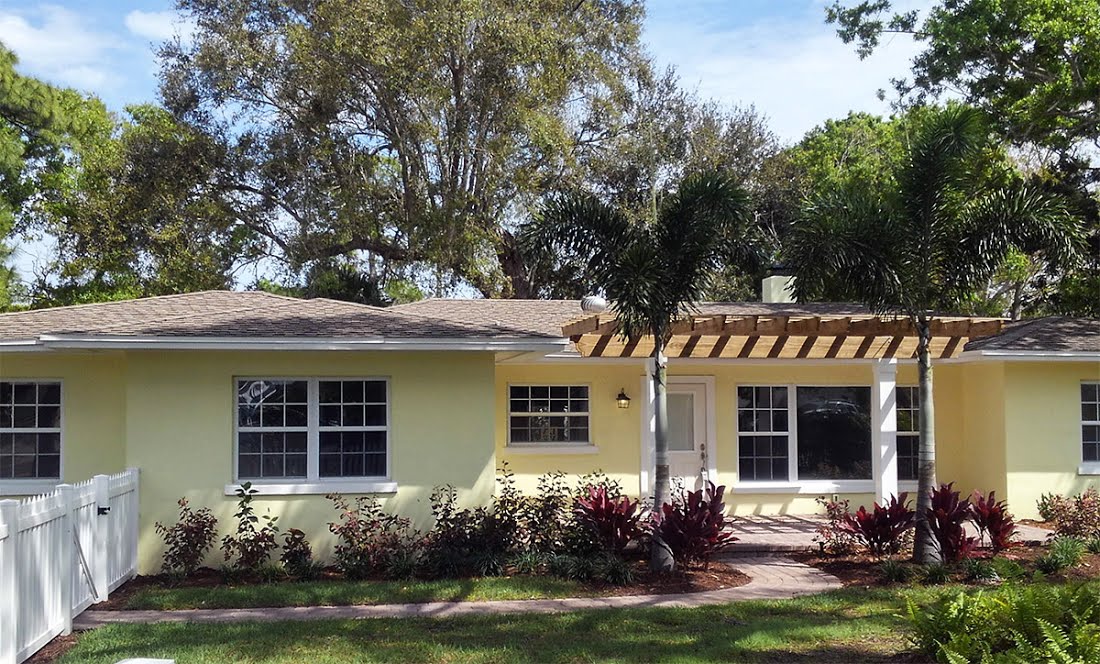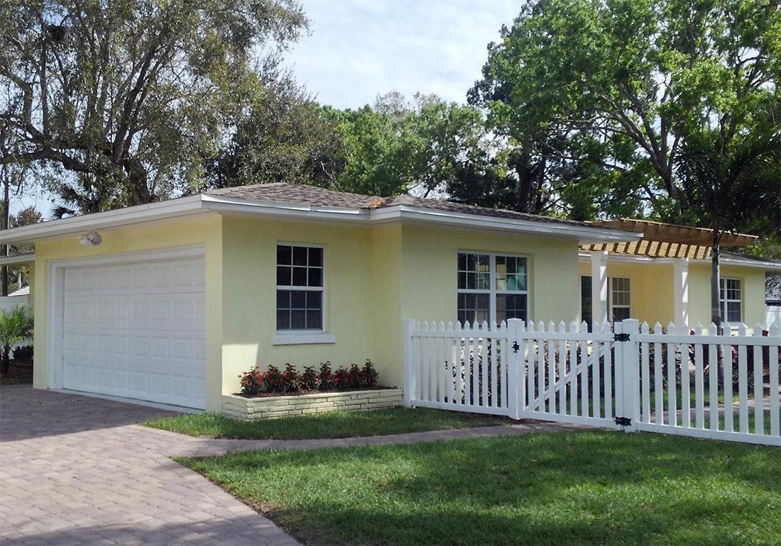 The Schmidt residence: we performed an entire house remodel, including enlarging rooms, adding new walls, and outdoor landscaping. Here we see the house after the first coat of the new exterior color.